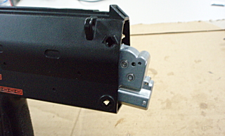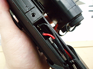 銃後部にあるピン2本を六角レンチで外すと、後ろのカバーが外れます。 |